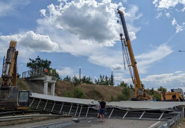 На автодороге М-05 Одесса-Киев, возле города Умань на проезжую часть обрушился пешеходный мост. Водитель грузовика, на который упал мост, чудом остался жив. Это произошло на 208-м километре дороги.