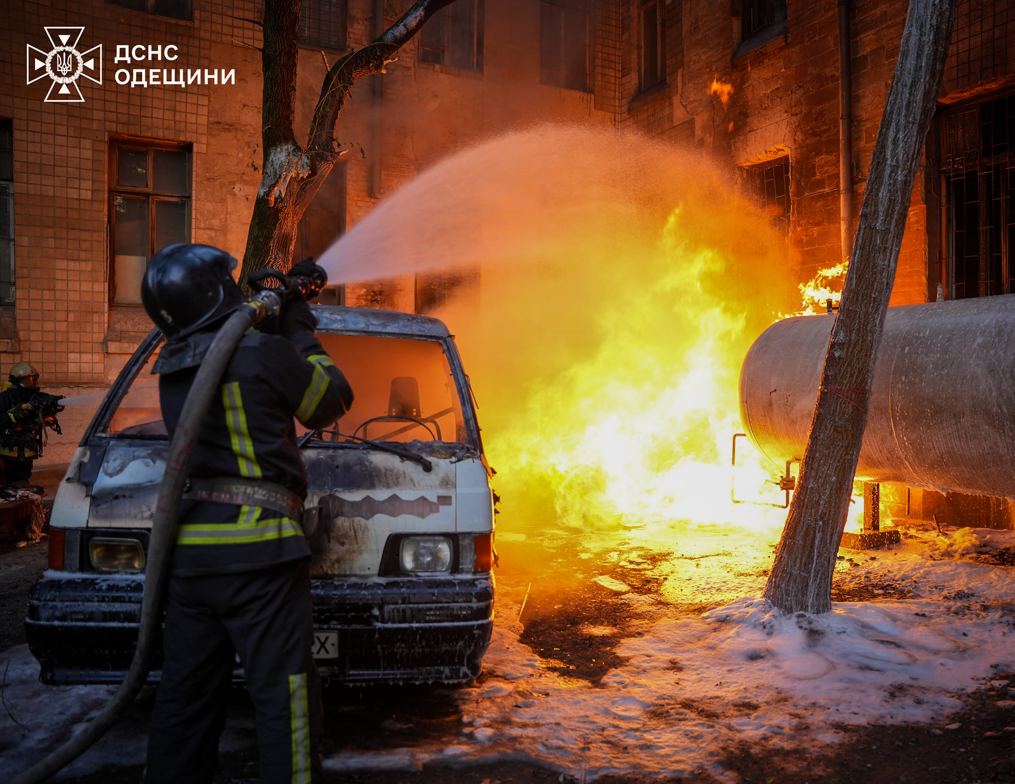 Вчера вечером в Одессе на улице Сергея Ядова произошел серьезный пожар. Вспыхнула цистерна с газом, утечка из которой вызвала распространение пламени на соседнее двухэтажное нежилое здание. Ликвидация пожара была затруднена из-за высокой температуры, периодических выбросов горящего газа и сильного задымления, что создавало угрозу взрыва.