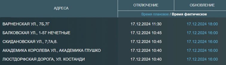 Подача воды прекращена по следующим адресам: