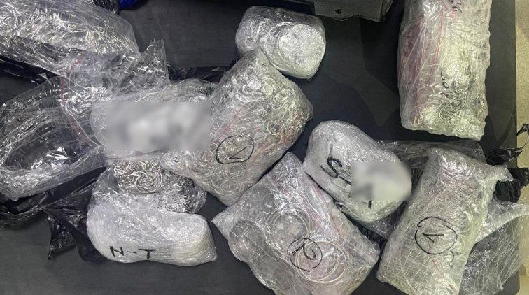 В пункте пропуска «Орловка» в Одесской области пограничники и таможенники пресекли попытку незаконного ввоза крупной партии серебряных украшений. 19-летняя гражданка Украины, следовавшая автобусом из Турции, спрятала ювелирные изделия общим весом 14,5 килограмма в своем багаже.