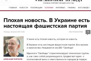«В Украине есть настоящая фашистская партия. Без иронии и ерничества. Называется она ВО «Свобода», — написал Ройтбурд.