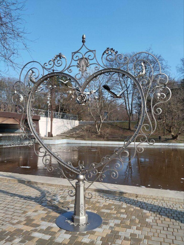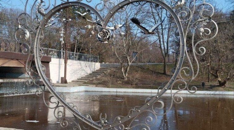 К празднованию Дня Святого Валентина в Одессе появился новый арт-объект, который уже успел стать излюбленным местом для прогулок и фотосессий влюбленных пар. В одном из самых живописных уголков парка Победы, между двумя маяками, установлена оригинальная скульптура в виде сердца. Композицию дополняют фигуры журавлей, парящих над сердцем, а также стилизованная мачта с капитанским мостиком.