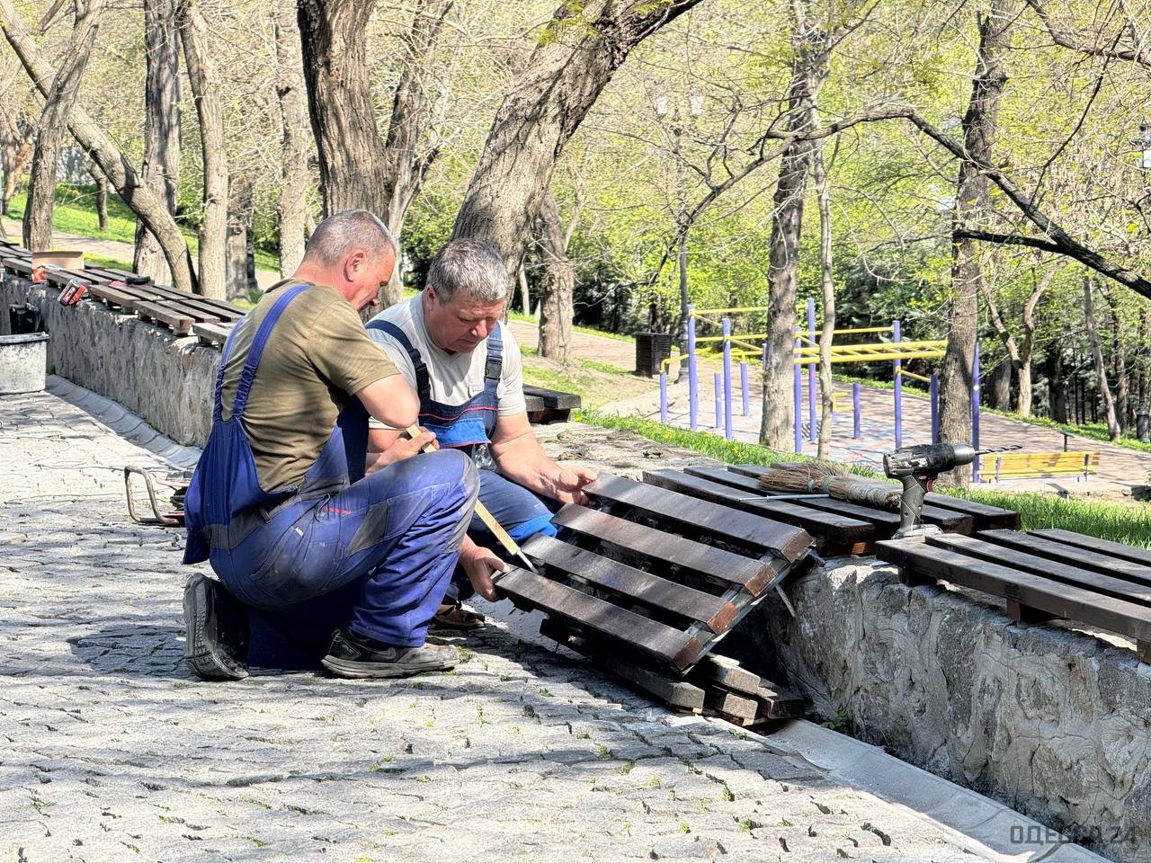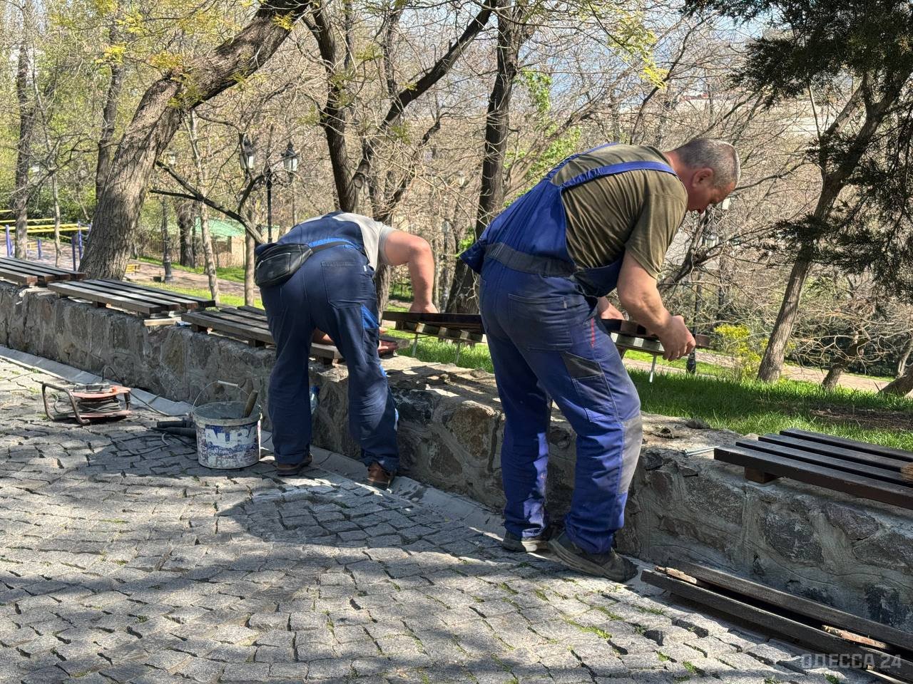 Коммунальное предприятие «Горзелентрест» активно продолжает работы по благоустройству и уходу за зелеными зонами Одессы. В настоящее время особое внимание уделено Стамбульскому парку, где специалисты ремонтируют и красят скамейки и урны, а также обновили информационные таблички у питьевого фонтана. Эти мероприятия направлены на создание комфортной и эстетически привлекательной среды для отдыха горожан и гостей города.