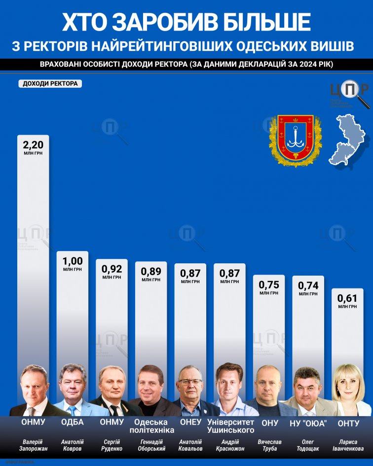 Данные показывают, что ректоры одесских вузов остаются в числе самых обеспеченных представителей образовательной сферы региона, сочетая доходы от заработной платы, дополнительных источников и имущества.