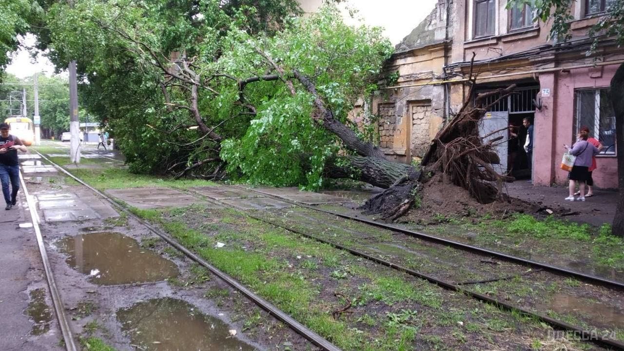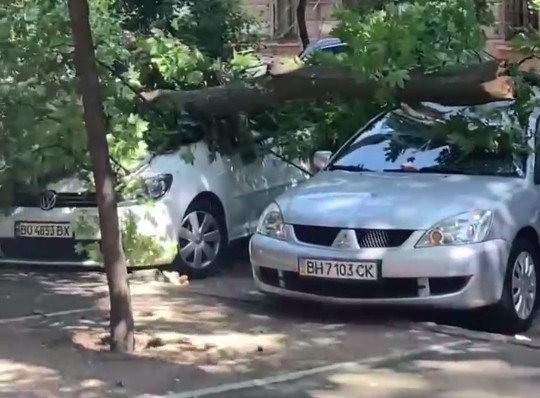 В субботу утром рядом с домом №5 на ул. Еврейской упало дерево на машины.