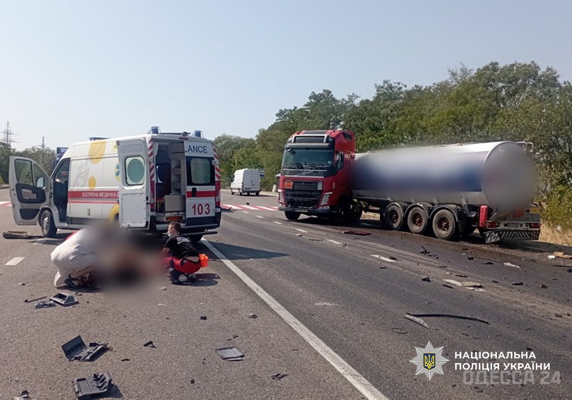 По предварительной информации, авария произошла на перекрестке дорог между Белгородом-Днестровским и Староказачьем. 52-летняя женщина за рулем минивэна «Mercedes Benz» выехала со второстепенной дороги и не уступила дорогу автопоезду «Volvo» под управлением 42-летнего водителя, который двигался по главной.