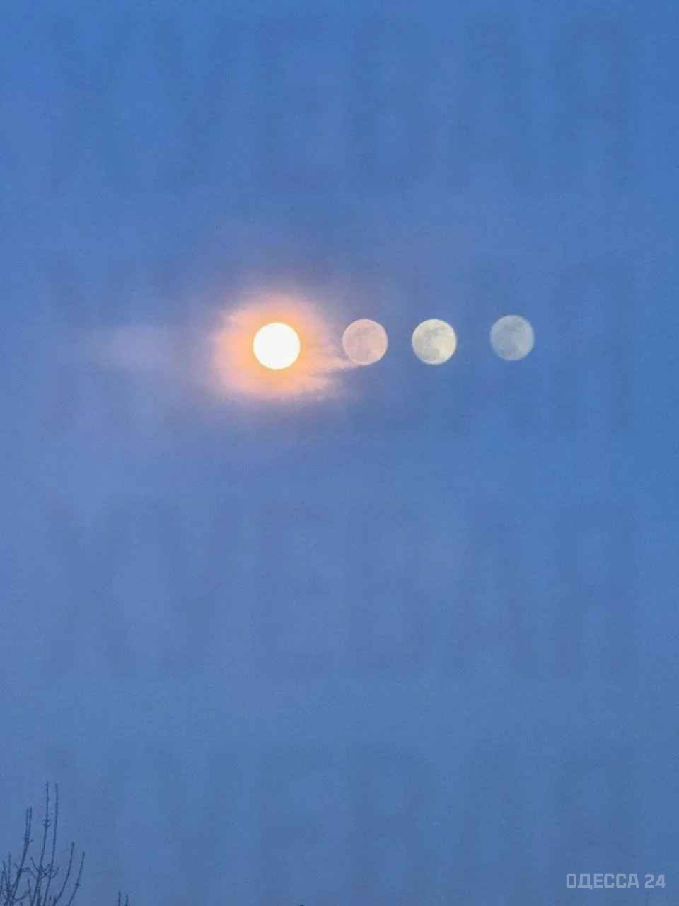 Вечером 1 февраля жители Одессы могли наблюдать в ночном небе необычное и редкое явление — рядом с Луной появились яркие световые пятна, визуально напоминающие ее «двойников». Из-за этого создавалось впечатление, будто над городом одновременно светят сразу несколько лунных дисков, что привлекло внимание многих горожан.