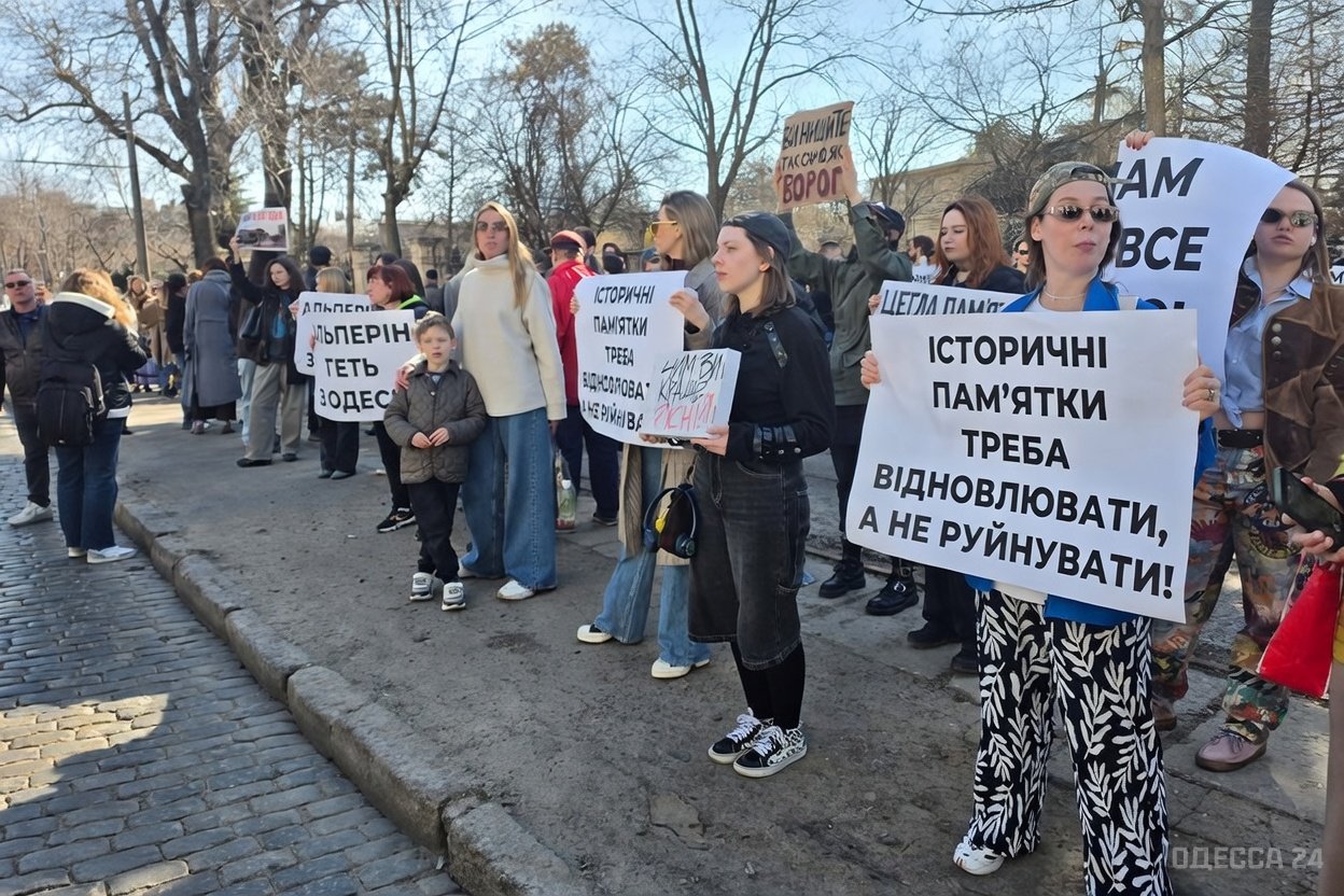 В Одессе возле многострадального здания на Французском бульваре, 10 собрались более ста человек — потому что, как оказалось, уничтожение памятников архитектуры всё ещё вызывает вопросы. Акция прошла на фоне уже зафиксированных повреждений исторического объекта, и участники решили напомнить, что город — это не только место для новых жилых комплексов.