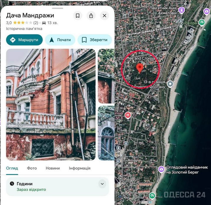 В Одессе история снова проиграла скорости строительной техники. На территории бывшего санатория на 14-й станции Большого Фонтана всего за несколько часов исчезла дача Мандражи — памятник архитектуры конца XIX века. Снос дачи Одесса прошёл настолько оперативно, что у горожан не осталось времени даже на привычные споры — всё уже превратилось в строительный мусор.