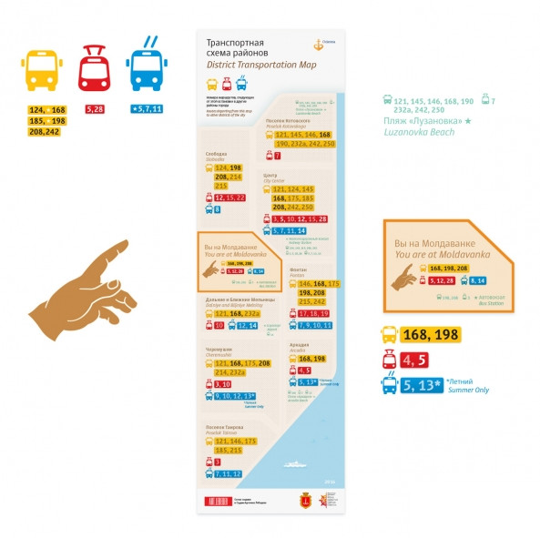 Студия Артемия Лебедева при участии одесских дизайнеров и урбанистов создала схему общественного транспорта Одессы, которую намерены разместить на остановках. Об этом говорится на сайте студии.