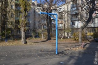 Ответ, как водится, скрывался где-то посередине. Спортивная площадка в проходном дворе была здесь еще с советских времен и всегда являлась центром притяжения для спортивной ребятни Молдаванки: мест для занятий спортом в старинном районе не так много, а тут аж две массивных баскетбольных вышки и асфальт. Размеры поля позволяют играть и в мини-футбол. В 1990-х здесь даже были футбольные ворота, но потом их украли.