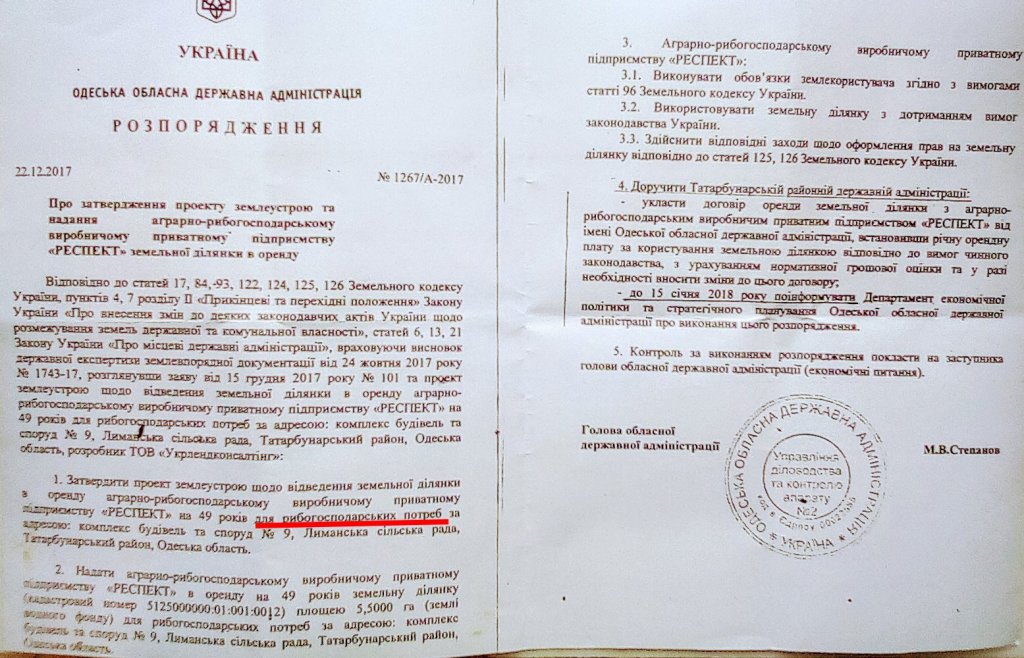 По словам Ивана Русева, распоряжение было издано «тайно от главы Татарбунарской райадминистрации, территорией которой, он, якобы, управляет». Для районного руководителя явилось новостью поручение составить договор аренды этого участка.