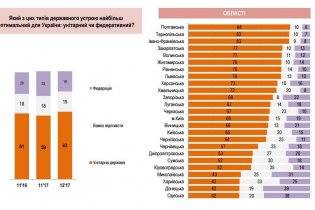 Больше всего унитаристов опрос зафиксировал в Полтавской области: здесь приверженцами унитарной модели государственного устройства выступили 84% жителей.