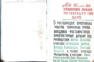 Во время выполнения строительных работ в доме Руссова, специалисты «Укрспецпроект» нашли послание, датированное 1974 годом.