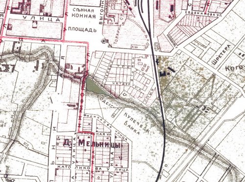 [Примечание редакции. На основе анализа старых карт Одессы можно сделать некоторые выводы. На карте Одессы 1917 года, где учтен рельеф местности, интересующие нас места обозначены как "Купеческая балка". На советской топографической карте речка, текущая по Водяной балке вдоль улицы Балковской обозначена как постоянный водоем или русло голубым цветом. Видно, что речка начинается где-то на Ближних Мельницах. Очевидно, что задачу пересечения железной дороги власти посчитали решенной сначала путем сооружения переезда через пути, а потом и моста над путями - нынешнего Горбатого (Бароновского) моста. А "стихийная" дорога под насыпью могла возникнуть позже. В советское время насыпь железной дороги была увеличена в ширину - в связи с чем в видеоролике мы видим "переход" от старой кирпичной конструкции переход к типовой бетонной конструкции коллектора. Данный тоннель не совпадает по своей архитектуре с теми тоннелями под железнодорожными насыпями, которые сооружались в период до 1865 года при строительстве железной дороги в Одессе с транспортной целью - на Пересыпи, где у Херсонского сквера проходит линия трамвая №20 и у Кучургана.]