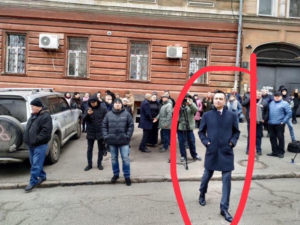 На фотографиях в толпе запечатлели самого Болдина и зарегистрированный на его имя автомобиль Volvo XC60. Как известно, на этом авто перемещается Владлена Дубинина — самопровозглашенная и.о. ректора ОНМедУ. Максим Болдин был адвокатом экс-мэра Одессы Эдуарда Гурвица и прописал скандального градоначальника в своей квартире. Во времена мэрства Гурвица Болдин возглавлял юридический департамент горсовета и фигурировал в уголовном деле о передаче в частные руки 23 зданий коммунальной собственности.