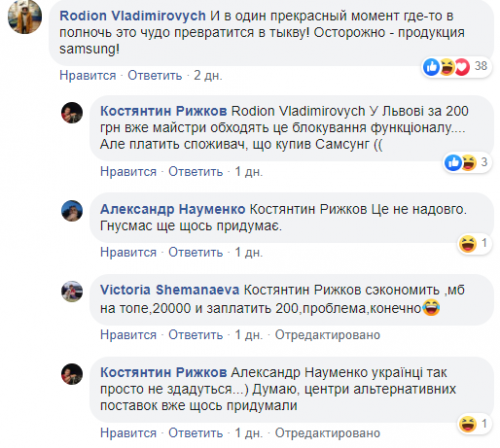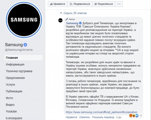 Представители компании Samsung Украина в Facebook пишут, что "блокировка коснулось функции устройств, выпущенных для использования на территории других государств или регионов".