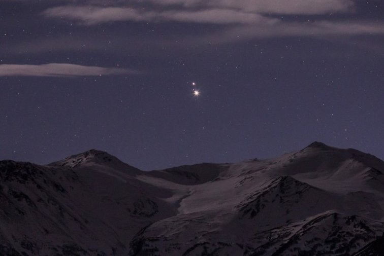 Невооруженным глазом Сатурн и Юпитер выглядели, как одна сверхяркая звезда.