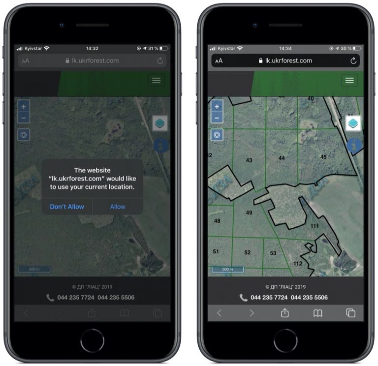 Онлайн-сервис «Лес в смартфоне» позволяет проверить, легально ли ведется вырубка деревьев. Сейчас есть информация о 27 тысячах выданных лесорубочных билетов, дающих право на вырубку определенного объема древесины. А онлайн-карта вырубки пока полноценно работает только в трех областях: Черниговской, Полтавской и Ровненской.