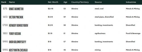 В рейтинге 1990 позиций, в том числе шесть из них занимают украинские бизнесмены. При этом год назад в списке было семь украинцев.