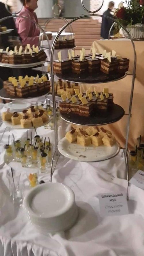 Как утверждает «слуга народа», ведомство Вятровича в 2018-м заказало фуршеты в честь дня Голодмора почти на полмиллиона гривен. При этом декоммунизатор присвоил себе большую часть из этой суммы. Чтобы не быть голословным, депутат выложил у себя на странице фото банкета, организованного Вятровичем за бюджетный счет в День памяти жертв Голодомора. Оно содержит такие деликатесы как профитроли и пирожные «Милфей», а также канапки с куриным террином и апельсином, бутерброды с семгой, блинчики с мясом, королевский сыр с ягодами и прочие разносолы.