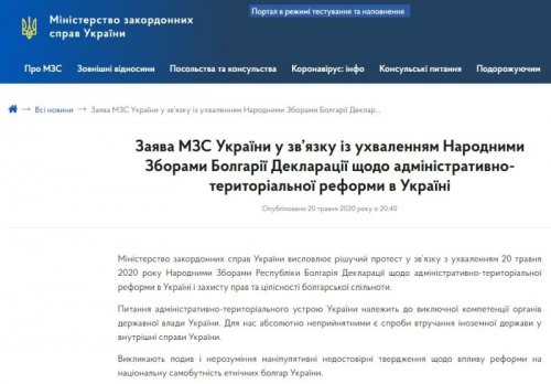 Министерство иностранных дел Украины уже отреагировало на декларацию Болгарии. Пресс-служба ведомства сообщила, что вопросы административно-территориального устройства Украины относятся к исключительной компетенции органов государственной власти, поэтому «абсолютно неприемлемыми являются попытки вмешательства иностранных государств во внутренние дела Украины».