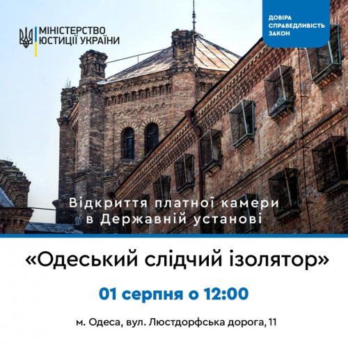На 1 августа в Одесском следственном изоляторе на Люстдорфской дороге, 11 запланировано открытие первой платной камеры.