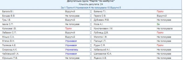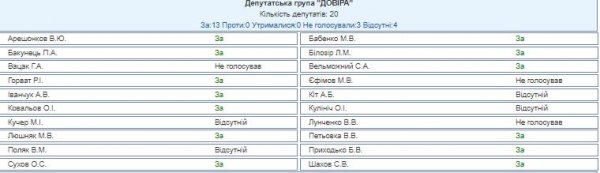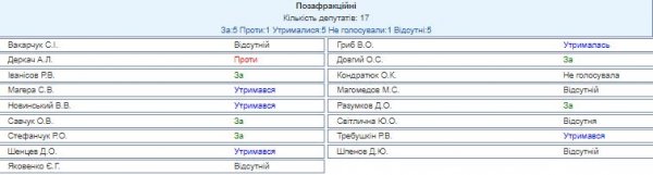 - Воздержались Бужанский, Демченко, Касай, Колев, Лерос, Микиша, Черный, Шевченко.