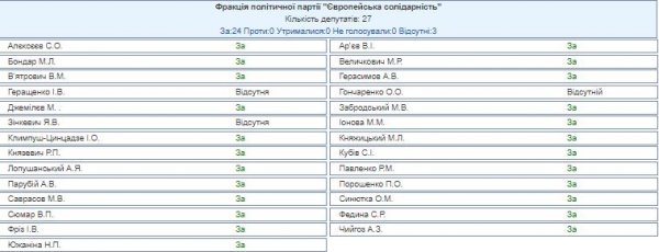 Не голосовали только отсутствующие Геращенко, Гончаренко и Завитневич.