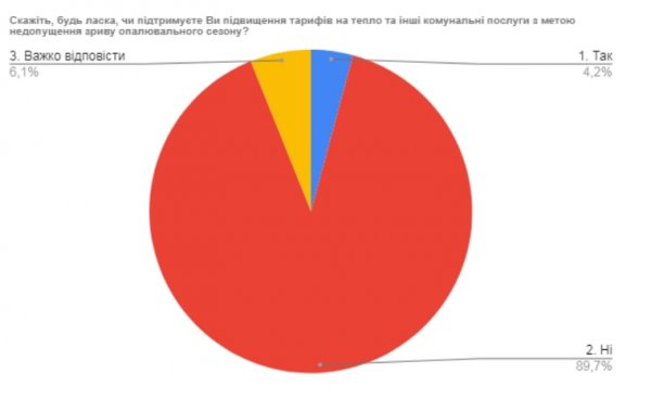 Согласно результатам исследования, 89,7% выступают категорически против дальнейшего повышения тарифов на коммунальные услуги даже с целью недопущения срыва отопительного сезона. За эту инициативу высказались 4,2%, а 6,1% опрошенных воздержались от ответа.