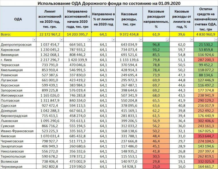 Хуже всего использовали Дорожный фонд Черновицкая ОГА (25%), Волынская ОГА (29,8%), Тернопольская ОГА (30,5%), Николаевская ОГА (41,8%).