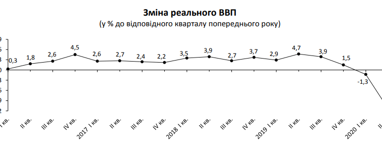 Падение валового внутреннего продукта (ВВП) Украины в апреле-июне 2020 года составило 11,4% к аналогичному периоду 2019 года. Таким образом, Государственная служба статистики (Госстат) подтвердила свою предварительную оперативную оценку, обнародованную в середине августа. Об этом сообщается на сайте ведомства.