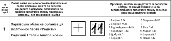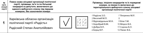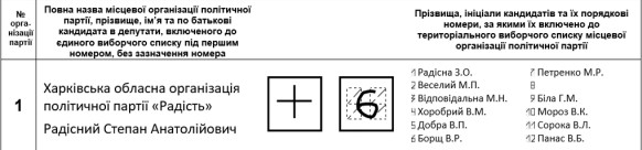 Кроме отметок V или + в поле местной организации партии, вам необходимо вписать цифру во второй квадрат с нанесенным трафаретом: