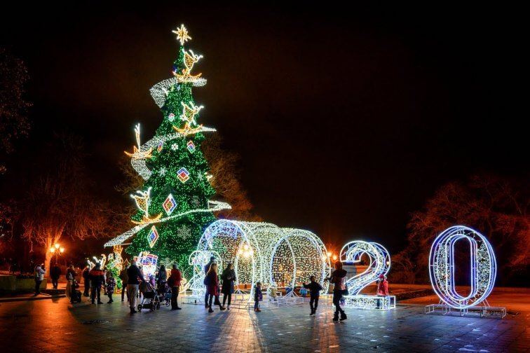 Компания «Люмьер» в 2013-м создала для одесситов уменьшенную копию столичной ёлки — высотой 20 метров и диаметром основания 9 метров. С тех пор её ежегодно ставят на Думской площади. Конструкция принадлежит громаде, черноморская компания получает деньги лишь за установку и техобслуживание.