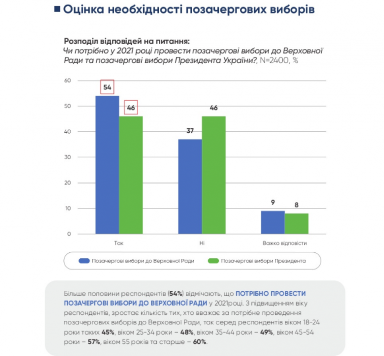 Больше половины респондентов (54%) считают, что в 2021 году нужно провести перевыборы в Верховную Раду.