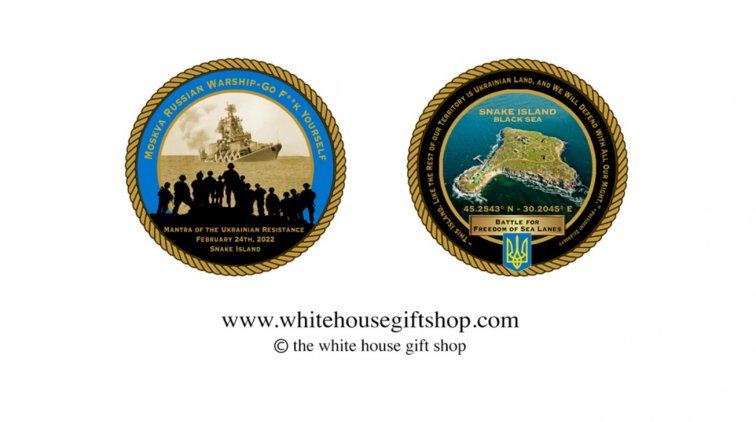 Белый дом выпустил коллекционную монету, посвященную защитникам острова Змеиный. На ней изображен всем известный корабль, уничтоженный украинскими бойцами.