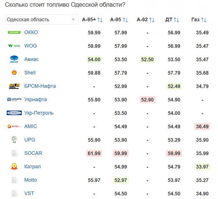 Стоимость бензина А-92 в Одесской области за последние несколько дней упала на 75 копеек за литр. Кроме того, незначительное падение в цене есть и у А-95. Согласно данным сайта Auto.ria, самое дорогое по состоянию на 22 ноября горючее на SOCAR, между тем сэкономить можно заправляясь на БРСМ-Нефть. Тем временем стоимость газа выросла на гривну.