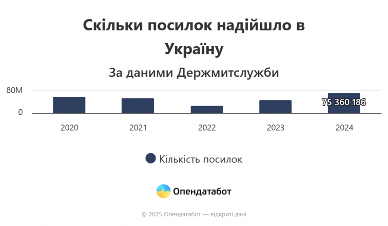 Согласно данным портала Опендатабот, за последние четыре года лишь 0,75% международных посылок, поступивших в Украину, облагались пошлиной. По информации Государственной таможенной службы, с 2020 года в страну было ввезено более 272 миллионов посылок. Больше всего отправлений зафиксировали в 2024 году — 75 миллионов, что на 30% превышает показатели довоенного времени. За этот же год в бюджет поступило 185 миллионов гривен ввозной пошлины, а средняя сумма налога на одно отправление составила около 8 евро.