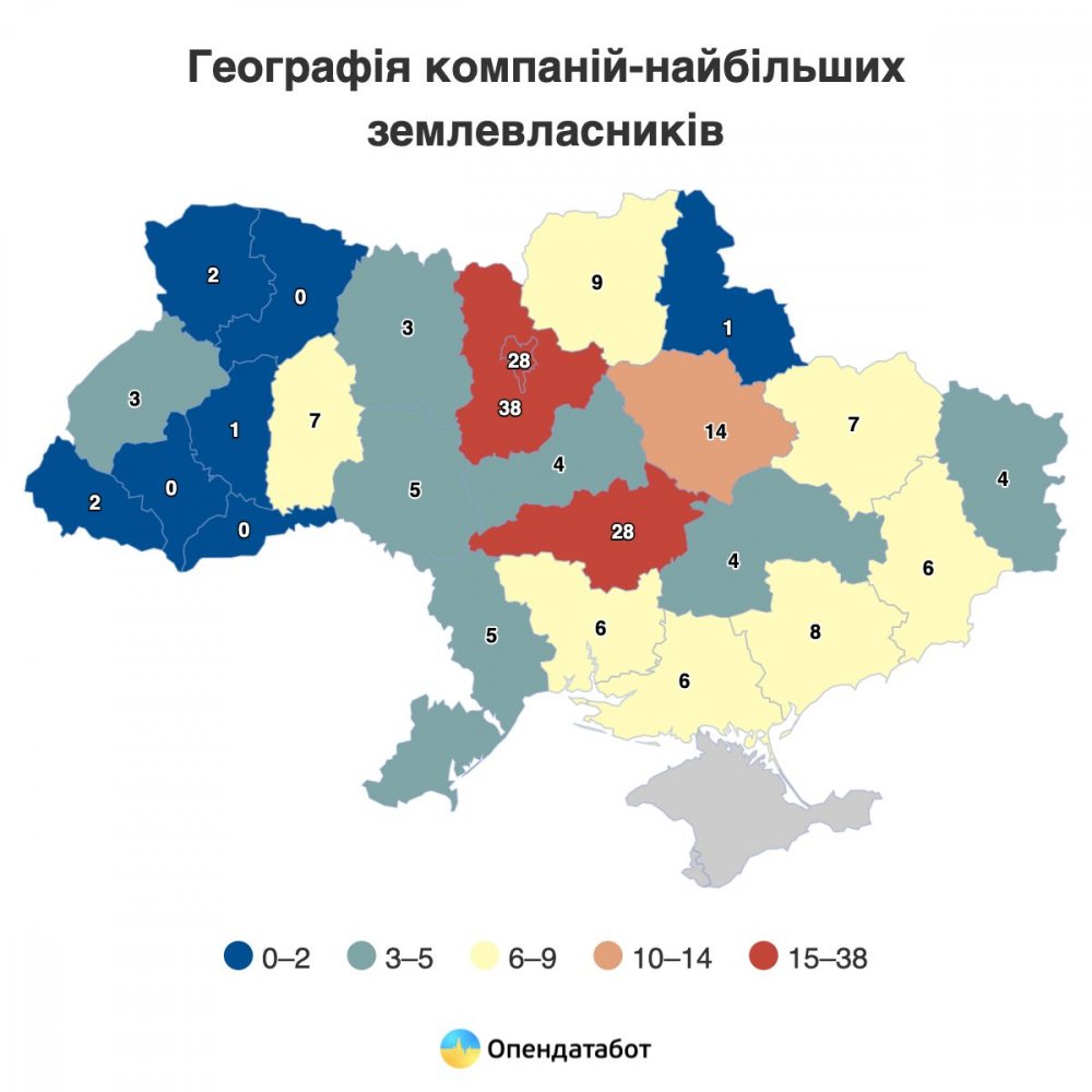 Отдельно аналитики обращают внимание на влияние войны на структуру землевладения. Часть компаний из списка крупнейших зарегистрирована на территориях, пострадавших в результате боевых действий. В частности, 16 компаний имеют регистрацию на временно оккупированных территориях, еще 4 — в зонах активных боевых действий, где продолжают функционировать государственные электронные реестры, а 14 компаний зарегистрированы в районах возможных боевых действий.