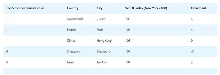 По версии аналитического подразделения Economist Intelligence Unit (EIU) Гонконг, Париж и Цюрих разделили между собой первое место в списке самых дорогих городов мира. В прошлом году первое место занял Сингапур.