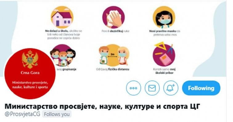 Министерство образования, науки, культуры и спорта Черногории перевело главную интернет-страницу ведомства и свои аккаунты в соцсетях с латиницы на кириллицу.