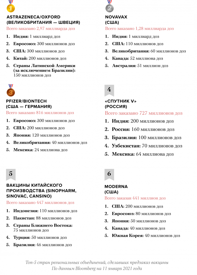 1 место: AstraZeneca/Oxford (Великобритания, Швеция) - всего заказано 2,97 млрд доз