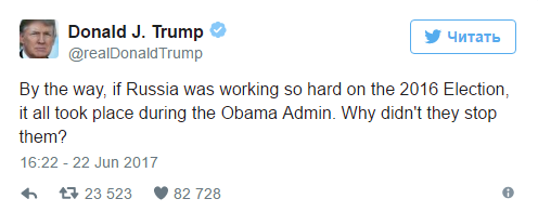«Кстати, если Россия так активно вмешивалась в президентские выборы в 2016 году, в то время как администрация Обамы была у власти, почему они (сотрудники администрации — прим.) не остановили их?» — спросил он.