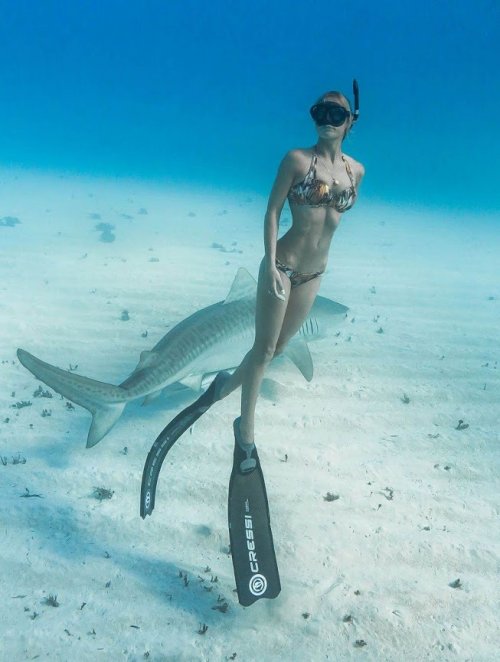 Биолог, дайвер и фотомодель с морским именем Оушн Рамзи (Ocean Ramsey) живет на Гавайях и занимается, пожалуй, самой опасной деятельностью в мире — изучает поведение акул в открытом океане. Для этого она совершает регулярные погружения вместе с акулами, делая невероятные снимки, от которых в жилах стынет кровь. Девушка научилась задерживать дыхание под водой до 5 минут и порой кажется, что она уже может жить под водой.